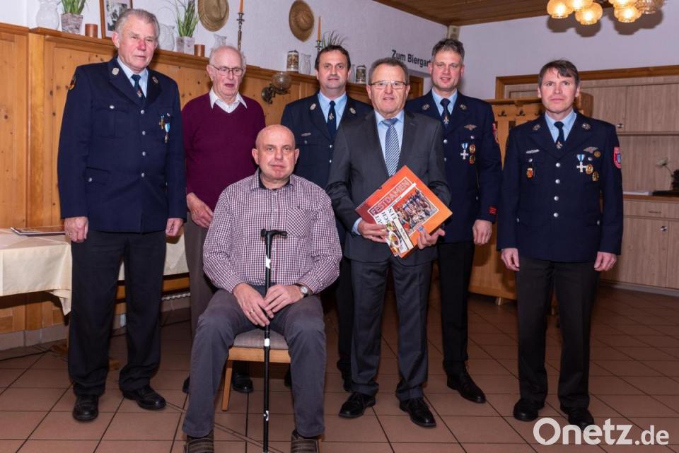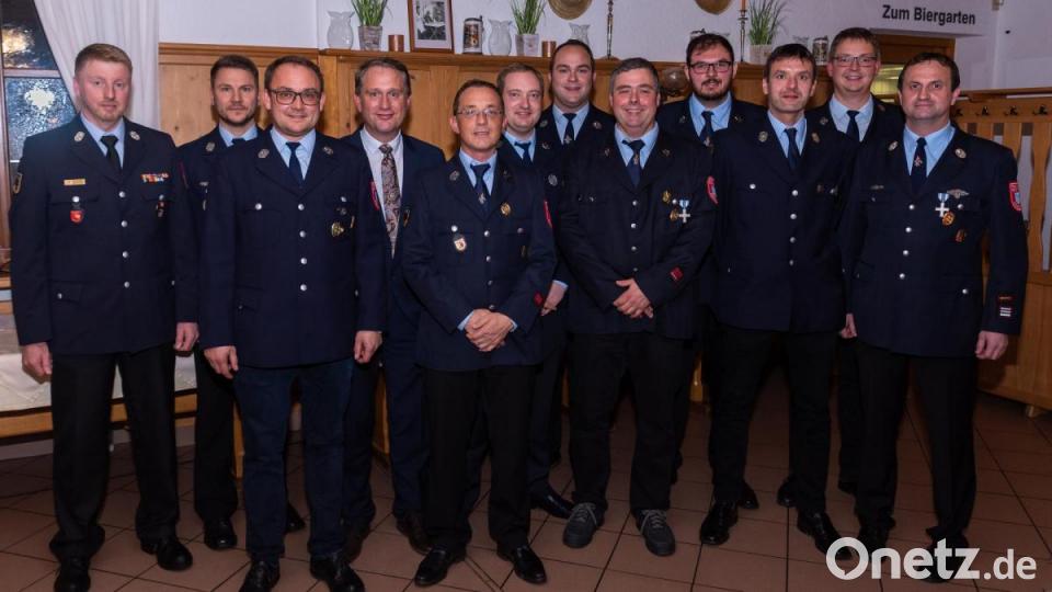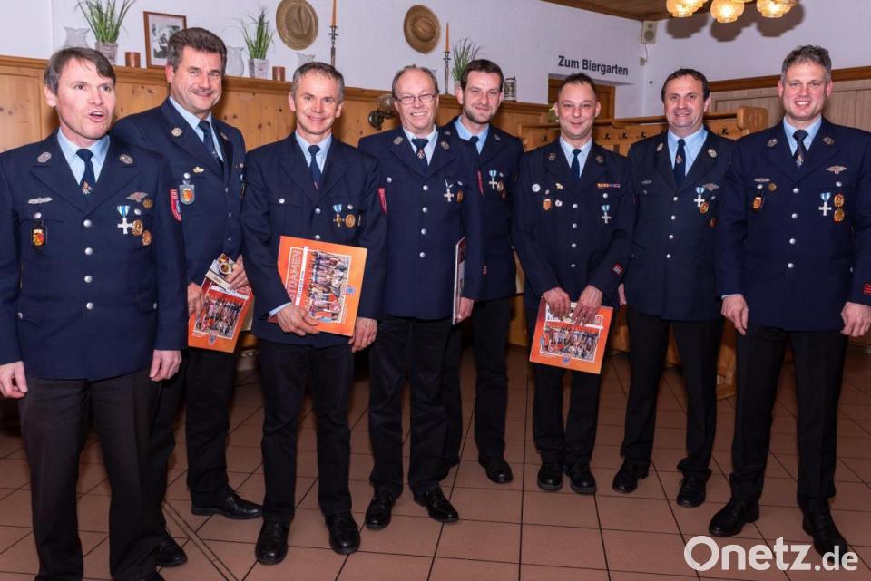 Zweiter Bürgermeister Hermann Böhm erinnerte an die Feuerwehrtugenden, bevor er gemeinsam mit Kommandant Max Rösch, Kreisbrandmeister Jürgen Schloß und dem Vorsitzenden Christian Beck zu den Ehrungen und Auszeichnungen schritt.