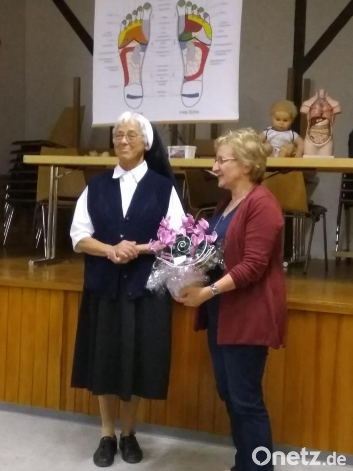 Auf Einladung des katholischen Frauenbundes und des Krankenpflegevereins sprach Schwester Jubilata Marder im Pfarrheim über die Fußreflexzonenmassage und ihre Wirkung. Ihr Ruf als Expertin auf diesem Gebiet eilt ihr mittlerweile weit über die Grenzen ihres Heimatlandkreises Cham voraus. So drängten sich auch in Trausnitz die Zuhörer im Pfarrheim. Ihr Wissen hat sich die Ordensfrau in den 38 Jahren in der Mission in Sambia erworben, wo sie eigentlich als Lehrerin tätig war. Jetzt hilft sie den Kranken im "Haus der Begegnung" im Kloster Strahlfeld. "Der Fuß ist die Schaltzentrale unseres Körpers", weis Schwester Jubilata zu berichten. Abhängig davon wo die Fußsohle massiert wird, wirkt sich dies auf die unterschiedlichsten Stellen im Körper aus. So wirkt sich eine Masssage der Zehenspitzen beispielsweise auf das Gehirn aus. Ziel der Fußreflexzonenmassage ist es, die durch Ablagerung teilweise blockierten Verbindungen zwischen den einzelnen Organen/Körperteilen mit entsprechenden Nerven-Endpunkten in den Füssen und Händen wieder herzustellen. Dies geschieht in der Regel durch Druck. "Da, wo's wehtut, muss man drücken", heißt die Devise von Schwester Jubilata. An den Füssen verschiedener Teilnehmer zeigte die Ordensfrau sehr anschaulich und schmerzhaft, welche Stellen behandelt werden müssen. Dabei nahm sie ihr berüchtigtes "Stöckli" zur Hilfe. Die Behandlung löst Blockaden, lindert Schmerzen und fördert die Durchblutung. Am Ende des Abends bedankte sich Maria Müller, die Vorsitzende des KDFB, ganz herzlich für die interessanten Erklärungen und Demonstrationen bei Schwester Jubilata mit einem Geschenk.