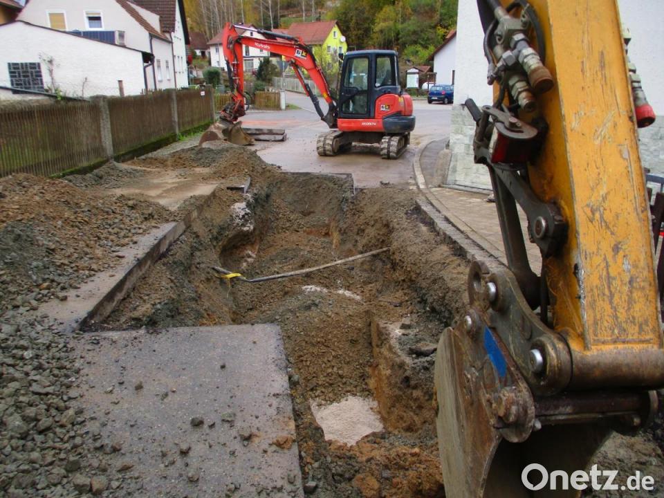 "Wir haben gute Leute. Wenn alle zusammenhalten, bekommt man das hin", sagte Bürgermeister Martin Schwandner am Sonntagvormittag gegenüber Oberpfalz-Medien. Nach dem Wasserrohrbruch rückten Bagger an, um in der Hauptstraße ("Sparkassenkurve") nahe des Gemeindehauses an das Leck zu gelangen. Zunächst musste das ausgetretene Wasser abgepumpt werden, ehe mit den Reparatur-Arbeiten begonnen werden konnte.