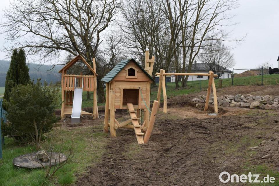 Mit dem Frühjahr ist auch auf der Baustelle des Kinderspielplatzes in Söllitz wieder Bewegung eingekehrt. Das Gelände wurde durch den Bauhof profiliert, die Fallzonen ausgehoben und die Spielgeräte montiert. Die Kinder werden sich noch bis August gedulden müssen, bis sie den Spielplatz in Beschlag nehmen können.