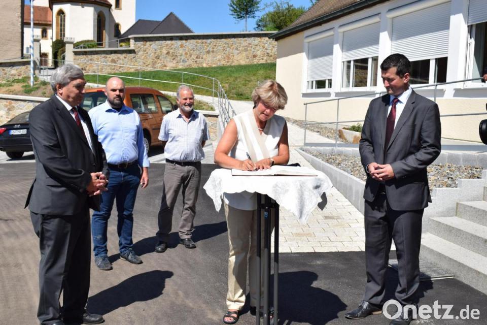 Vor dem Pfarrheim wurde sie von einer Delegation in Empfang genommen. MdB Karl Holmeier, die stellvertretende Landrätin Birgit Höcherl, Bürgermeister Martin Schwandner und Pfarrer Hans Spitzhirn entboten ihr Willkommensgrüße und dankten der Ministerin, dass sie das Förderanliegen so tatkräftig unterstützt hat. Das Pfreimdtal und die exponierte Lage von Trausnitz in herrlicher Natur hatten es der Ministerin sichtlich angetan. Bei der Beschreibung der ersten Eindrücke kam sie regelrecht ins Schwärmen.