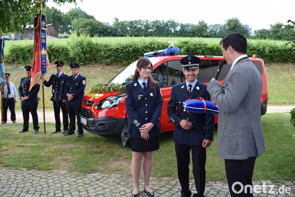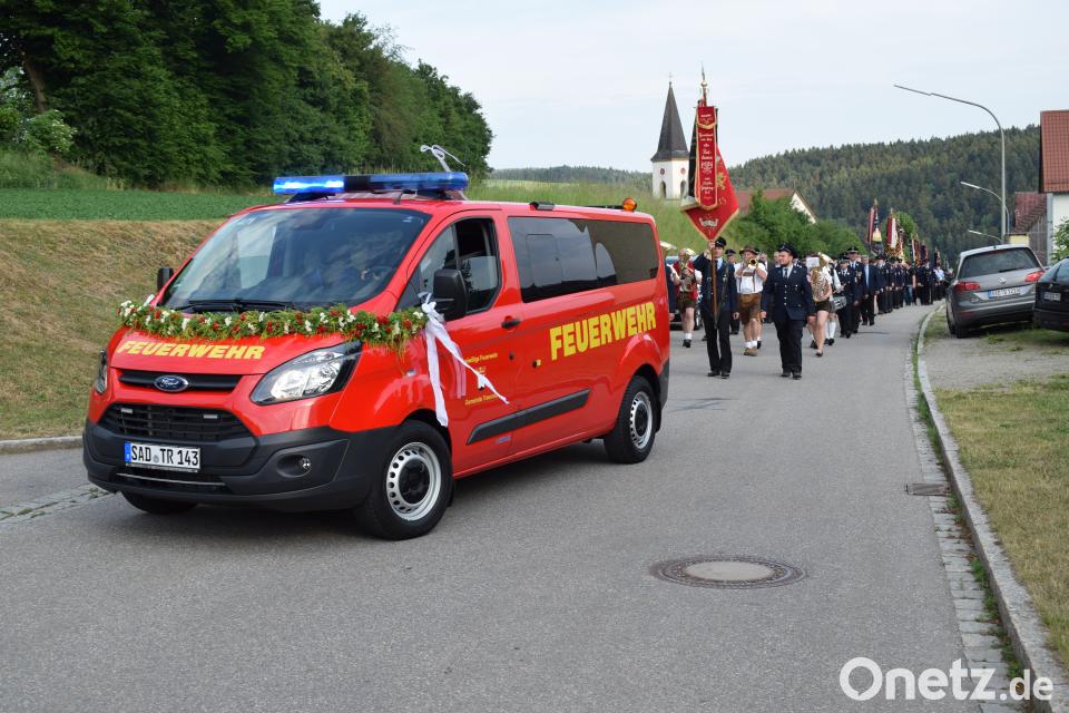Ein weiteres Anliegen des Vorstands seit Jahren der Ankauf eines Mannschaftstransportwagens. Wie so oft war auch hier das nötige Geld das größte Hindernis. Die Führungsriege sich nicht entmutigen und hat durch Sponsorengelder und Zuschüsse in Höhe von 22500 Euro dem Gemeinderat die Entscheidung erleichtert. Den Rest der Anschaffungskosten von 48 000 Euro wurde dem Gemeindesäckel entnommen. Jetzt verfügt die Feuerwehr über einen MTW der Marke Ford Custom, der allen Anforderungen entspricht. AAm Samstag erteilte Pfarrer Hans Spitzhirn der restaurierten Fahne und dem neuen MTW den kirchlichen Segen.