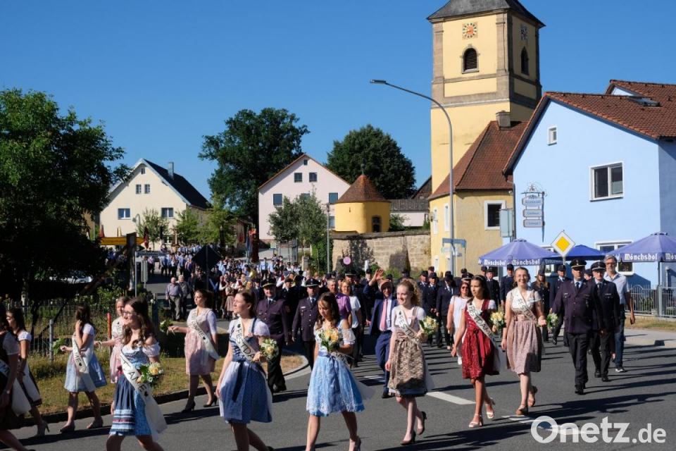 Äußerst angenehm war deshalb die Aufgabe des Schirmherrn. Bürgermeister Albert Nickl brauchte nur noch ein Loblied auf die vielen helfenden Hände, die attraktiven Festdamen, die vielen hundert Feuerwehrkameraden, das gut gelaunte Publikum und Prior Pater Adrian anstimmen. Der Ortsgeistliche war es dann auch, der beim Jubiläumsgottesdienst am Sonntagvormittag auf dem Festgelände zwischen Feuerwehrgerätehaus und Creußen die zentrale Bedeutung der Wehr für das Dorf, die Gemeinde und alle Schutzbedürftigen hervorhob.