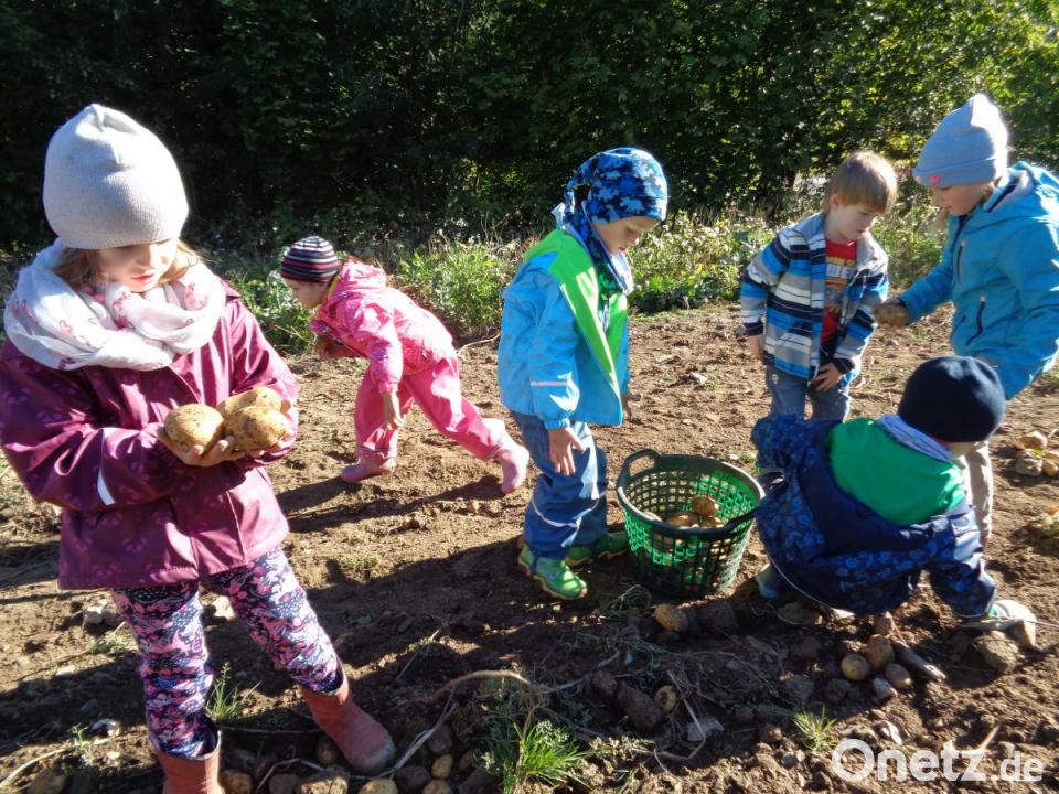 Auch die Tierwelt, welche im Kartoffelfeld ihr Zuhause hat, wurde entdeckt und erforscht, zum Beispiel die gemeine Feuerwanze, der Kartoffelkäfer und der Regenwurm. Die Erzieherinnen werden mit den Kindern, Speisen aus den selbstgeernteten Kartoffeln fürs Erntedankfest zubereiten. So können die Kindergartenschützlinge den gesamten Werdeprozess der Kartoffel mit allen Sinnen erleben. Von der Aussaat bis hin zum Verzehr. Kindergartenleiterin Sabine Schinner bedankte sich herzlich bei der Familie Lorenz, die dieses tolle Projekt ermöglicht hatte.