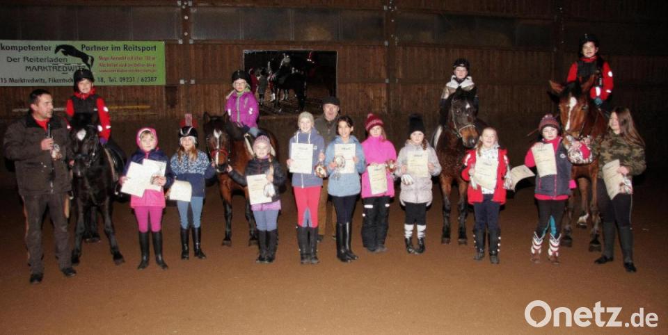 Den 14 Prüflingen – ausnahmslos Mädchen – war die Freude über den Erfolg förmlich ins Gesicht geschrieben. „Alle haben das kleine Reitabzeichen bestanden“, informierte Zweiter Vorsitzender und Moderator Jürgen Herrmann bei der Jahresabschlussfeier des Reit- und Fahrvereins Trevesenhammer. Geprüft wurden die Grundlagen über die Pflege und das Verhalten der Vierbeiner, die zuvor in den vielen Reitstunden erlernt wurden. Zudem hatten die Zöglinge fleißig Figuren und Gangarten trainiert, um das Erlernte – kurz vor Silvester - unter den gestrengen Augen der Schiedsrichter Karl und RFV-Vorsitzender Martin Kastner im Rahmen der Jahresabschlussfeier vorzuführen.