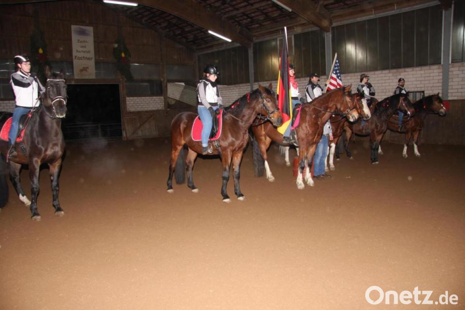 Viel Körpersprache, ebenso Einfühlungsgabe und Handlungskompetenz erforderte bereits das Warmreiten. Danach wurde die Reitkleidung gewechselt und die vorbereiten Fahnen in die Hand genommen. Für einige Minuten gehörte die Reithalle Michaela Schultes, Ulrike Finzel, Amelie Neugirg, Marlena Haberkorn, Florian Reiß und Franziska Pokert. Brav meisterten aber auch die gesattelten, fein herausgeputzten und im Stall eingestellten Schützlinge Franz, Atlanta, Finura, Endo, Anne und Hek ihr erlerntes Programm, für das Pferd und Reiter viel Beifall ernteten. „Um eine gute Vorstellung zeigen zu können, ist es nötig, das richtige Tempo zu treffen“, erklärte Schriftführerin Franziska Pokert wenige Minuten vor dem Einreiten zur Quadrille. Im Gespräch mit Oberpfalz-Medien betonte die RFV-Schriftführerin: „Wichtig ist es, punktgenau zu reiten.“ Karl Kastner ergänzte in der Reithalle: „Die Übergabe der Prüfungsurkunden, danach die Quadrille bilden stets die Höhepunkte unserer Jahresabschlussfeier, die mit einem gemütlichen Beisammensein endet.“