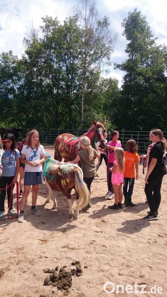Auch heuer fieberten die Reitschüler des Reit- und Fahrvereins Trevesenhammer dem zweitägigen Reitercamp mit Freude entgegen. 26 Jugendliche wurden von Vorsitzendem Martin Kastner und fünf Betreuern umsorgt. Zahlreiche Aktivitäten waren für die Teilnehmer vorbereitet worden. Zuerst durften sich die Kinder Namensschilder mit einer Buttonmaschine basteln, damit jeder den Namen des anderen wusste. Natürlich stand dann Reiten auf dem Programm - auf dem Reitplatz und bei herrlichem Wetter auch im Gelände. Nach dem Ausritt wurden die Sättel und das Zaumzeug geputzt und die Pferde geduscht. Die Teilnehmer wurden in vier Gruppen aufgeteilt. Während die einen auf dem Rücken der Pferde unterwegs waren, durften die anderen Traumfänger, in die ein Hufeisen eingearbeitet wurde, basteln. Nach getaner Arbeit wurden Würstchen und Stockbrot am offenen Feuer gebraten. Eine abendliche Wanderung schloss den erlebnisreichen Tag ab. Die Nacht verbrachten die Reitschüler in ihren Schlafsäcken auf der Tribüne in der Reithalle. Der zweite Tag begann mit einem ausgiebigen Frühstück in der Reithalle. Gut gestärkt standen wieder Reitstunden und Ausritte an. Auch an diesem Tag wurden unterschiedliche Bastelarbeiten angeboten. Nach dem Mittagessen durften die Jugendlichen die Pferde mit Fingerfarbe anmalen, somit entstanden wahre Kunstwerke auf den Rücken der Rösser. Viel zu schnell verging für die Reitschüler dieses erlebnisreiche Wochenende. Die nächste Veranstaltung steht bereits auf dem Terminplan: Am Sonntag, 11. August, lädt der Reit- und Fahrverein zum achten Freizeitturnier und Sommerfest nach Trevesenhammer ein.