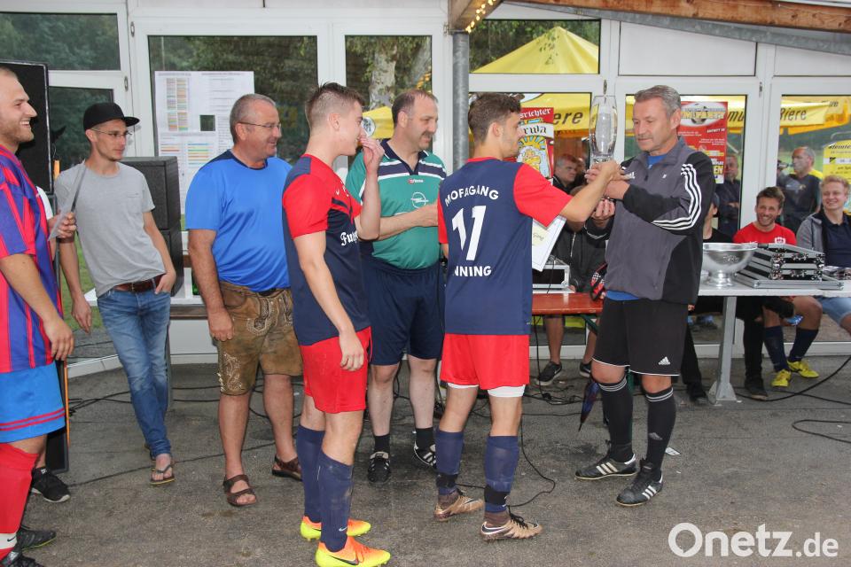 Bei der Siegerehrung dankte der Vorsitzende des SV, Hubert Scharf, den Schiedsrichtern, Sponsoren und dem Abteilungsleiter Fußball, Jürgen Altmann, der das Turnier wieder hervorragend vorbereitet hatte. Die Ergebnisse: . 1. "Mofa-Gang", 2. "Team 2", 3. Quadrus-Team, 4. KLJB Schmidgaden. 5. KLJB Weihern, 6. "Bruckmüller Bier Bombers", 7. "Kakadu", 8. "Mensch ist der United". 9. "White Bull", 10. Enzian Schützen Trisching. 11. "1. FC Haudanem", 12. "Lok Etsdorf", 13. Arco-Kickers Inzendorf. 14. "Pussys and the Cocks", 15. "SG Promillos e.V.", 16. "No Names".