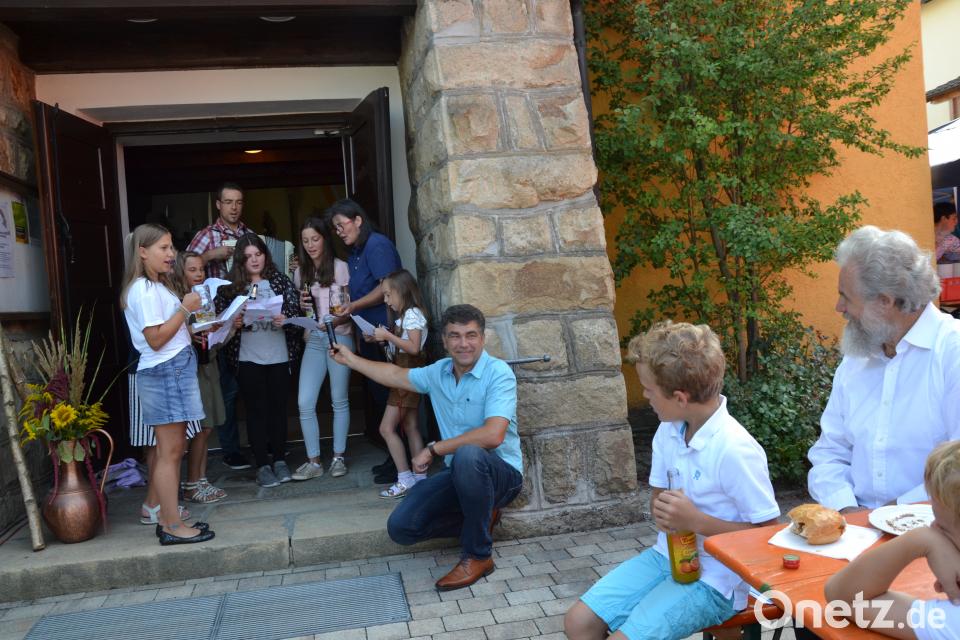 Unter den schattigen Sonnenschirmen ließ es sich gut feiern. Wegen der vielen Gäste musste sogar auf den Dorfplatz ausgewichen werden. Hier wurden auch Tische und Bänke aufgestellt. Bayerisches und kongolesische Essen wie Weißwürste mit Breze, Bratwürste, Obstsalat, frittierte Bananen, Tanga Wisi (alkoholfreies Getränk aus dem Kongo), sonstige Getränke sowie Kaffee und leckere Kuchen wurden angeboten. Tröbeser wie die Jungfeuerwehr an der Schänke, Mitglieder der Missionsbrücke und Freunde halfen zur Durchführung des Festes zusammen und sogar Urlaubsgäste griffen mit zu. Andreas Hofmeister (Harmonika) und Richard Reger (Gitarre) spielten bestens auf. Richard Reger hatte Spiele wie Bonbonschleuder und Erbsenschlagen mitgebracht.
