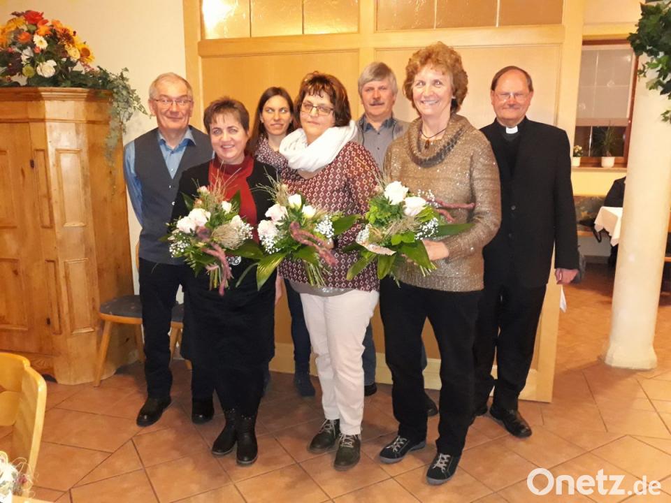 Pfarrer Heribert Stretz und der Chorleiter dankten für den treuen Besuch der Proben und den Einsatz in der Pfarrei. Der Geistliche stellte besonders heraus, dass er sehr erfreut darüber sei, einen Kirchenchor zu haben, der nicht nur zu besonderen Anlässen da sei, sondern das ganze Jahr über Gottesdienste begleite. Für ihren unermüdlichen Einsatz ehrten beide Hans Wopperer für 16 Jahre und Maria Schraml für 18 Jahre Mitgliedschaft. Sie erhielten eine Urkunde der Pfarrei. Frieda Zeitler und Renate Wiesent halten dem Chor bereits seit 40 Jahren die Treue. Roswitha Bär blickt sogar auf 50 Jahre aktives Singen zurück. Diese drei Damen nahmen eine Urkunde von Bischof Rudolf Voderholzer mit einer Anstecknadel in Gold in Empfang. Alle Geehrten durften sich außerdem über ein Geschenk in Form eines Gutscheins freuen. Pfarrer Stretz gab seiner Hoffnung Ausdruck, dass der Kirchenchor Kastl weiterhin so aktiv bleiben möge.