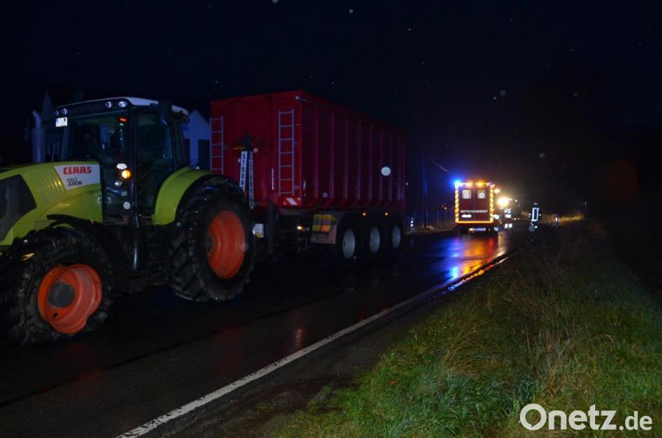 Ein 68-jähriger Landwirt hatte nach Polizeiangaben mit seinem dreiachsigen Abschiebewagen die Kreisstraße NEW 26 von Lämersdorf kommend in Richtung Zeßmannsrieth befahren. Auf Höhe der Zieglmühle kam ihm ein Mercedes entgegen, den ein 67-jähriger Mann steuerte. Im Fahrzeug befand sich das neunjährige Kind. Der Mercedes touchierte im Begegnungsverkehr das linke Vorderrad des Traktors, kam ins Schleudern und erfasste einen hinter dem landwirtschaftlichen Gespann fahrenden Golf, an dessen Steuer ein 45-Jähriger saß. Beide Fahrzeuge stießen mit großer Wucht zusammen.