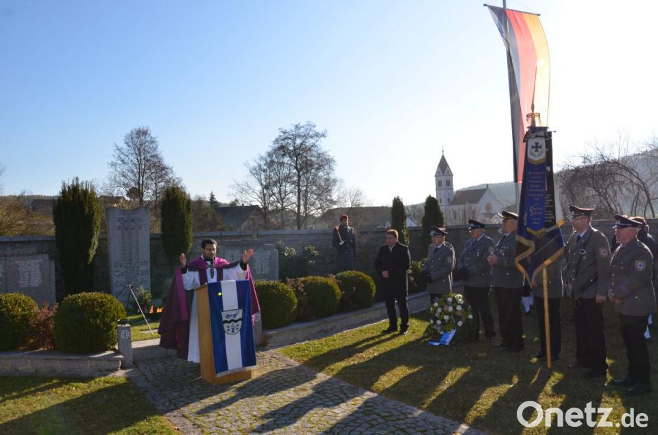 Für die jüngere Generation rücke dieser Gedenktag genau 100 Jahre nach Ende des ersten Weltkrieges in immer größere Ferne. Vorausgegangen waren bereits ein Kirchenzug zur Pfarrkirche St. Nikolaus, ein Rosenkranz für Verstorbene, Gefallene und Vermisste und eine Messfeier. Unter den Klängen der Blaskapelle Auerbachtal formierte sich der Zug mit der Soldaten- und Kriegerkameradschaft (SKK) Auerbachtal an der Spitze zum Friedhof. Neben der SKK beteiligten sich auch die Feuerwehren aus Unterauerbach und Mitter-/Oberauerbach und zahlreiche Pfarrangehörige. Pater Binu erinnerte in seiner Ansprache daran, dass viele junge Menschen in den sinnlosen Kriegen ihr Leben lassen mussten und betete für sie. Bürgermeister Hans Gradl wies auf die Bedeutung des Volkstrauertages hin, und sein Stellvertreter Franz Grabinger gedachte namentlich der Opfer der beiden Kriege aus dem Auerbachtal. Zusammen mit SKK-Vorsitzendem Georg Fischer legten die beiden Bürgermeister am Ende einen Kranz nieder, bevor das Lied vom Kameraden und Böllerschüsse die Veranstaltung beendeten.