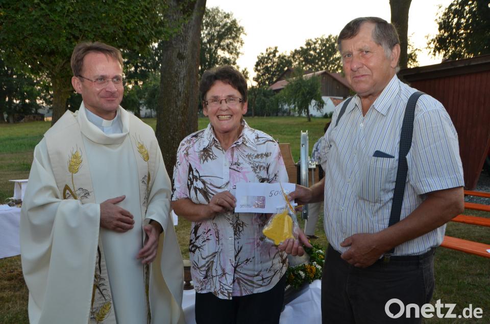 Flohmarktsammlerin Christa Wildenauer von „Kunst und Krempel“ überreichte an die Unterlinder Dorfgemeinschaft eine 500-Euro-Spende für den Glockenturmbau. Florian Meißner bedankte sich für das Mitfeiern und lud zu einem Stehempfang ein. Maria Uschold, Maria Kopp und Anita Hirmer beschenkten jeden Teilnehmer mit einer selbstgebackenen Glocke an die sie Vorschläge für Gebete beim Glockenläuten für die verschiedenen Tageszeiten anhefteten.