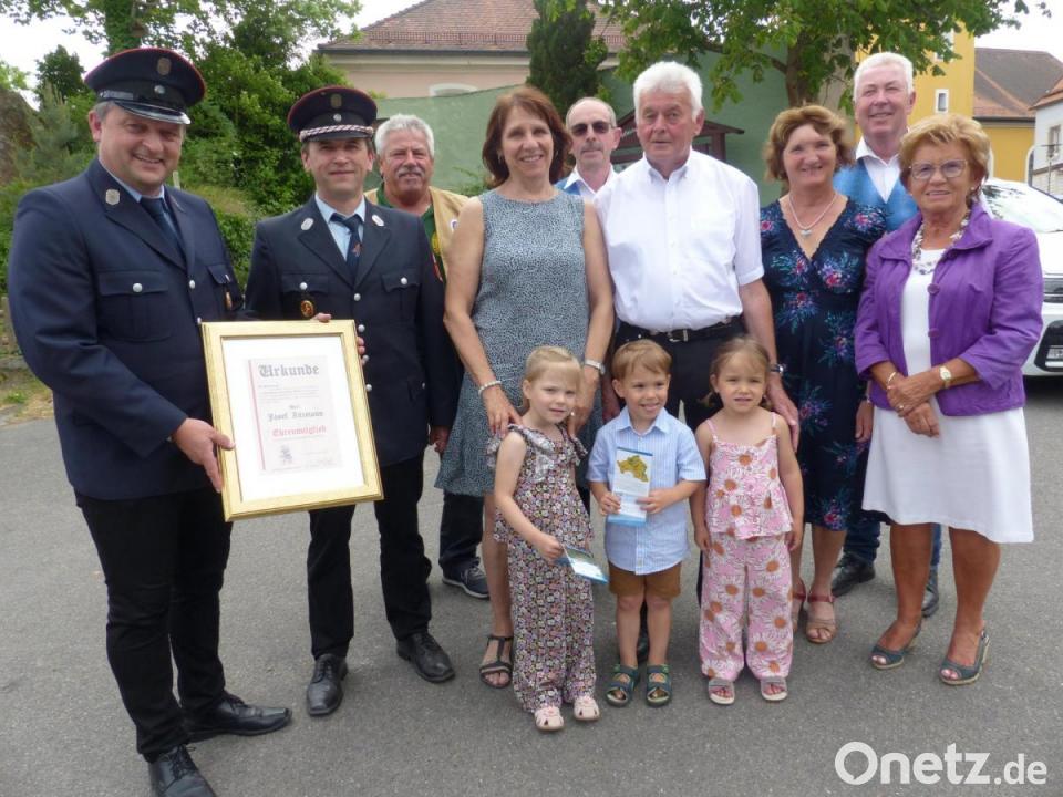 Vom Männergesangverein „Liederkranz“ überbrachte Josef Varnhold, vom OWV Michl Schwabl, vom TV Vohenstrauß Marcel Biber die Glückwünsche. Josef Zitzmann wurde als zweites Kind von Emma und Josef Zitzmann am 6. Juni 1953 in Unternankau geboren und wuchs mit seinen Geschwistern auf. In Leuchtenberg besuchte er acht Jahre die Volksschule. Den Schulweg musste er täglich zu Fuß zurücklegen. Beim Bahn-Ausbesserungswerk in Weiden lernte er Maschinenschlosser. Bis zum Renteneintrittsalter 2013 arbeitete Zitzmann bei der Bahn, anfangs in Weiden dann in Schwandorf und Hof. 1989 heiratete er seine Sieglinde Heslmeier aus Kaimling. Sie haben vier Kinder: Thomas, Markus, Heidi und Martin. Mittlerweile ist er Großvater von Isabella, Felicitas, Tim, Emilia, Jonah und Samuel. Drei davon sind Drillinge.