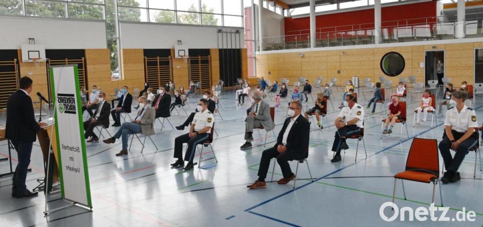 "Schulwegsicherheit ist ein Thema, das uns alle angeht", sagte Rektor Peter Großmann. "Ihr seid seit nun nicht mehr Kindergartenkindern sondern Schulkinder", sagte Schulamtsdirektor Gerald Haas zu den Mädchen und Buben der beiden ersten Klassen der Grundschule Ursensollen. Polizeidirektor Thomas Lachner meinte, dass gerade Schulanfänger besonders gefährdet seien. Im Schuljahr 2020/2021 habe es im Zuständigkeitsbereich der Polizeiinspektion Amberg sechs Schulwegunfälle mit leicht verletzten Kindern gegeben, vier im Stadtbereich Amberg, zwei im Landkreis. Aber selbst ein Schulwegunfall sei bereits einer zu viel.