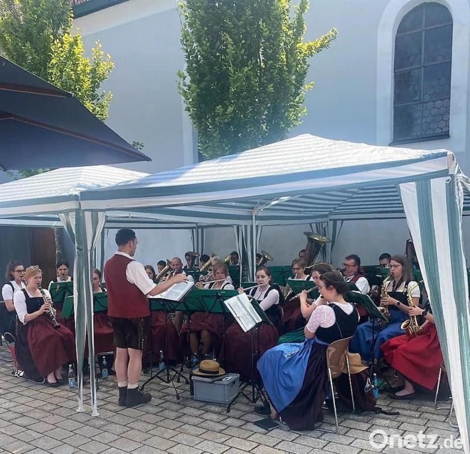 Nach zwei Jahren coronabedingter Pause freuten sich Musiker wie Zuhörer sehr über einen Tag mit traditioneller Blasmusik der Musikkapelle Ursensollen (MKU) am Dorfplatz. Wegen der erwarteten Hitze hatten die Veranstalter mit der Gemeinde für das Brunnenfest eine nahezu ideale Lösung gefunden: Bühne und Sitzbereich für die Besucher fanden Schutz direkt neben dem kühlen Mauerwerk der Kirche, für Essensstände und den Getränkeausschank fand sich auch ein schattiges Plätzchen.