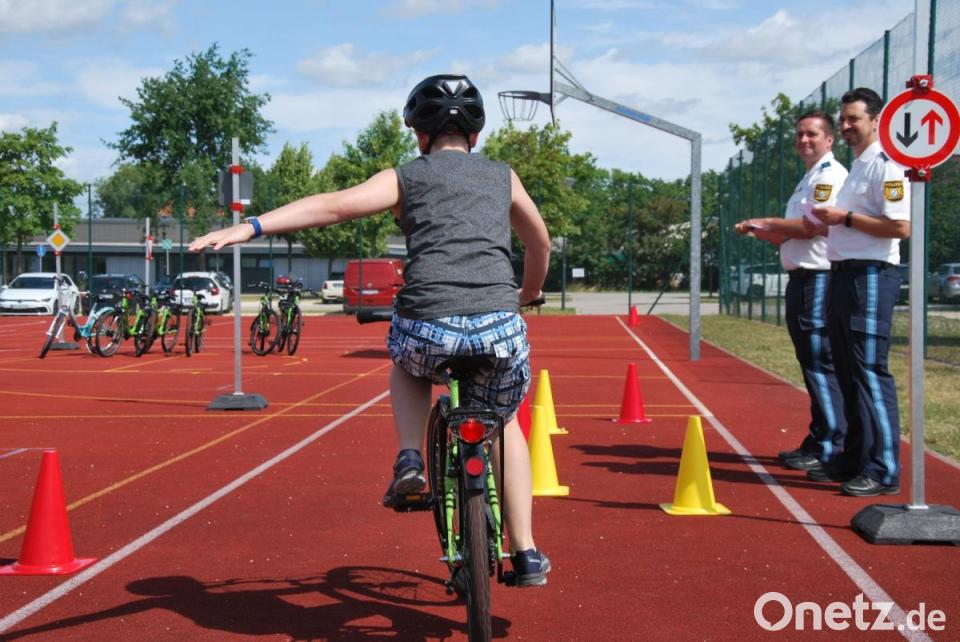 Auf dem Verkehrsübungsplatz der Grund- und Mittelschule Ursensollen war ein Fahrrad-Parcours mit zahlreichen Verkehrsschildern und Absperrhütchen aufgebaut. Hochkonzentriert absolvierten die Sechst-Klässler der vier Schulen aus Hahnbach, Ammersricht, Auerbach und Ursensollen, die sich für die Endausscheidung qualifiziert haben, die Aufgaben. Vorher mussten sie in einem Theorieteil Fragen über die Verkehrsregeln beantworten. Oberkommissar Michael Eisner und Polizeiobermeister Philipp Böhme, die beiden Prüfer, kontrollierten genau, ob alle Aufgaben auch richtig erfüllt werden. Die beiden Beamten sind für die Verkehrserziehung an den Schulen zuständig. Neun Schulen aus dem Landkreis Amberg-Sulzbach und der Stadt Amberg hatten an diesem Fahrradturnier teilgenommen, vier schafften es ins Finale in Ursensollen.