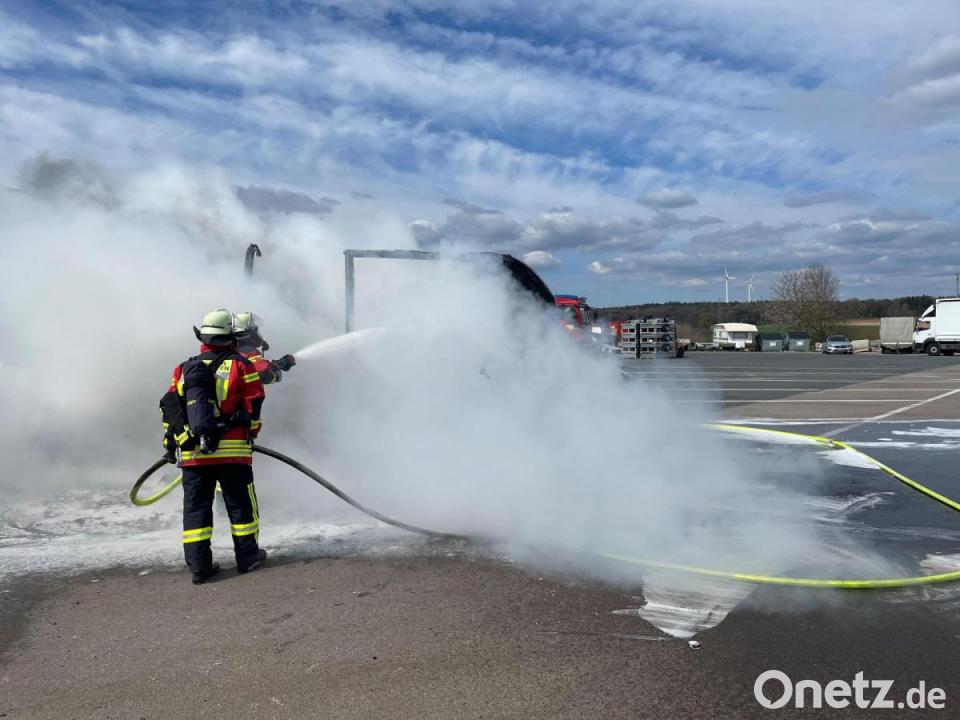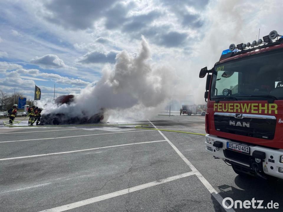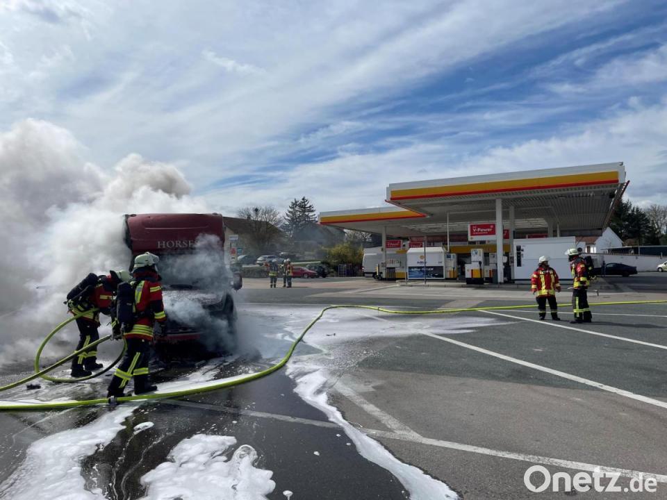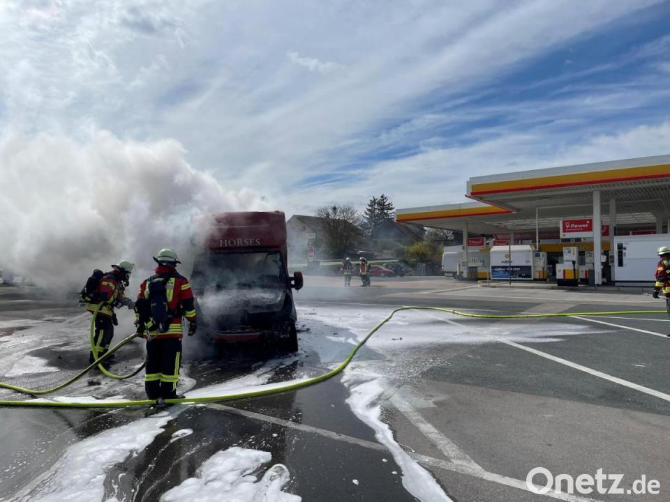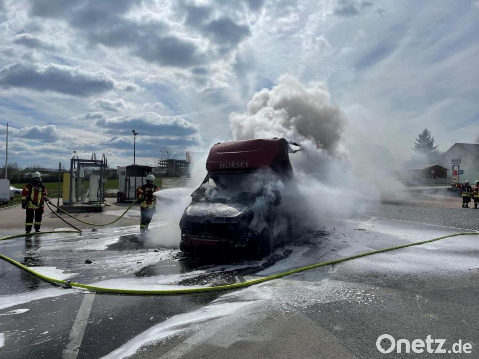 Nach Angaben der Amberger Polizei war der Pferdetransporter von der Autobahn gekommen und auf der B299 unterwegs, als der Fahrer plötzlich während der Fahrt eine Rauchentwicklung bemerkte. Der Fahrer stoppte daraufhin auf dem Parkplatz der Tankstelle. Das Fahrzeug fing sofort zu brennen an. Kreisbrandmeister Alexander Graf, der gerade beruflich in Kotzheim war, als er zum Brand alarmiert wurde, sah während der Anfahrt schon die Rauchsäule: "Das war schon von Weitem zu sehen." Der brennende Transporter stand nur rund fünf Meter von einer Gaszapfsäule entfernt. Diese ist zwar schon außer Betrieb, wurde aber vorsichtshalber von der Feuerwehr gekühlt. Auch die Tankstelle hatte als Vorsichtsmaßnahme sofort alle Zapfsäulen abgesperrt.