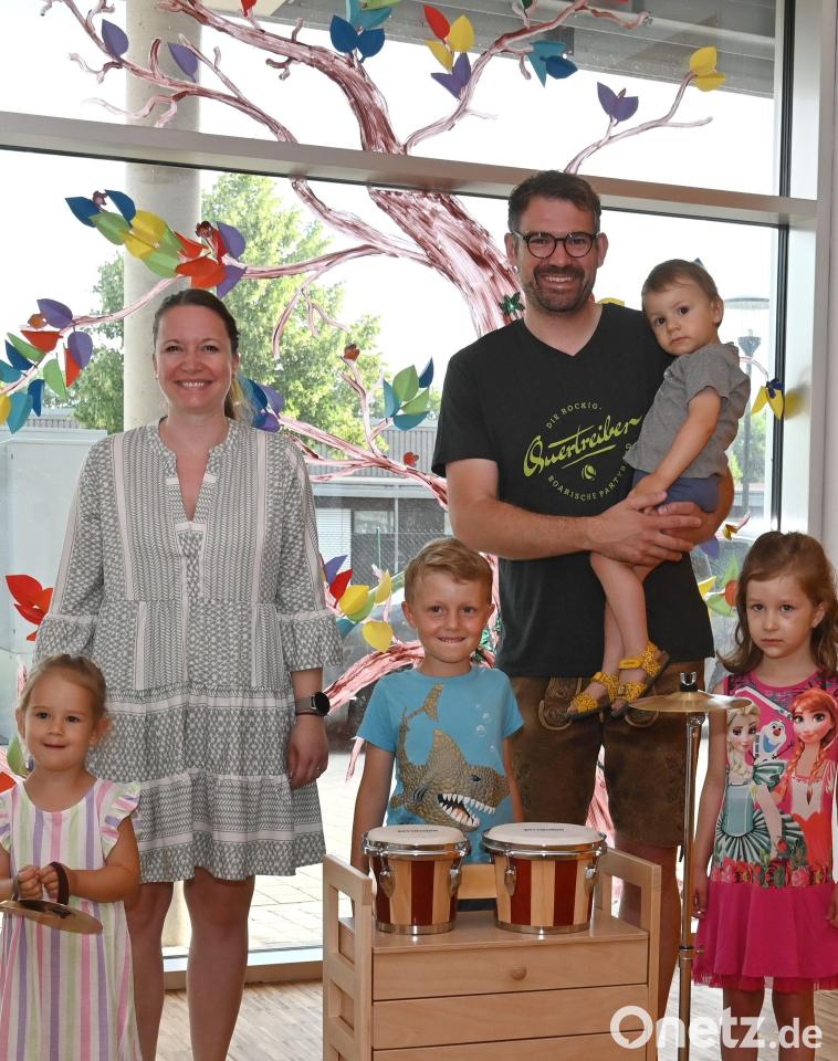 Im letzten Fasching hat die Band Quertreiber bei der Hexennacht auf dem Amberger Marktplatz gespielt. Einen Teil der Gage, genauer gesagt 500 Euro, spendieren die fünf Musiker der BRK-Kindertagesstätte Regenbogen in Ursensollen, wo fast 120 Kinder in sechs Gruppen von 20 Erzieherinnen und Kinderpflegerinnen betreut werden. Nicht Bargeld überbrachte Florian Meier der Kindertagesstätte, sondern einen „Musikwagen“ mit Schlagzeug, Trommeln, Triangel und Xylophon.