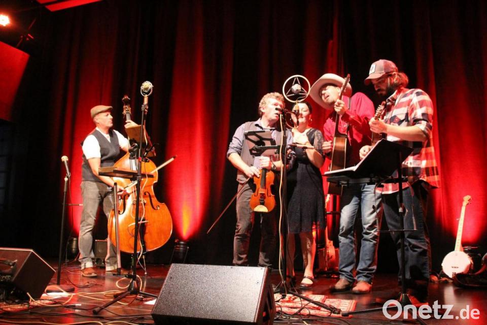 Mit Cowboyhut und Karohemd standen alle Zeichen auf "American Roots Musik", wie die fünf Regensburger von Uncle Sally ihre einzigartige Mischung aus Country-Perlen, Folk Songs, Bluegrass Stücken und vielem anderen aus der amerikanischen Musiklandschaft, liebevoll nennen. Ihren Koffer mit Nostalgie-Magie packten die Vollblutmusiker nun auf der Bühne im Kubus in Ursensollen aus. Souverän und humorvoll leitete Bandmitglied Sepp Zauner, der sonst an der Fiddle begeisterte, durch den Abend. Klassiker, wie "One more cup of coffee" von Bob Dylan, machten den Anfang. Mal leise, mal laut. Mal traurig und melancholisch, mal beschwingt und fröhlich gewannen die Regensburger ihr Publikum für sich.