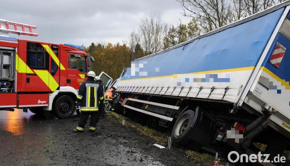 Der Lastwagenfahrer war auf der Autobahn in Richtung Nürnberg unterwegs, als er am Mittwochnachmittag unmittelbar nach der Einfahrt Ursensollen von der Fahrbahn abkam und in der Leitplanke hängen blieb. Der Fahrer wurde leicht verletzt. Sein Lkw blieb in gefährlicher Schräglage hängen. Da nicht auszuschließen war, dass er kippen würde, sicherten ihn die Rettungskräfte mit Hilfe von hydraulischen Seilwinden und Stahlseilen über ihre Feuerwehrautos.