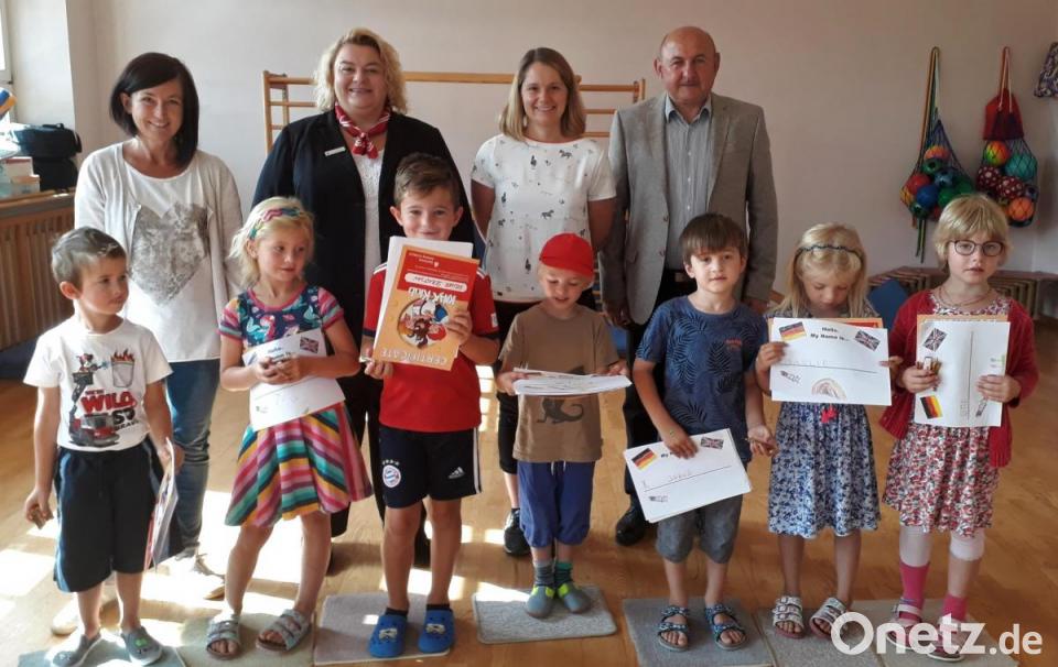 Mittel- und Vorschulkinder aus dem Kindergarten Ursulapoppenricht lernten mit viel Spaß Englisch. Die kleinen Teilnehmer hatten Freude mit dem von der Sparkasse Amberg-Sulzbach finanzierten Kurs speziell für Kindergartenkinder. Lehrerin Claudia Röhrer von der VHS Sulzbach-Rosenberg vermittelte den Jungen und Mädchen eine Menge Wissen und alle bekamen am Ende ihre selbst erarbeitete Arbeitsmappe.