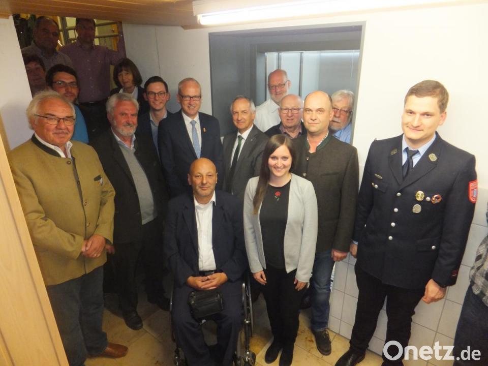 Bürgermeister Bernhard Lindner schilderte bei der offiziellen Inbetriebnahme das weitere Vorgehen. Nach dem ELER-Programmaufruf des Amts für ländliche Entwicklung bat er Landtagsabgeordneten Harald Schwartz, sich dafür einzusetzen, dass das Kriterium Barrierefreiheit in die Ausführungsbestimmungen für diese Förderkulisse aufgenommen wird. Ziel war es, unter Nutzung dieser europäischen Fördermittel, den seit 15 Jahren leeren Aufzugschacht zu füllen. Nach dem Beschluss des Marktgemeinderates erfolgte im Juni 2017 der Zuwendungsbescheid in Höhe von 35 000 Euro vom Amt für ländliche Entwicklung, die Gesamtkosten lagen bei etwa 70 000 Euro. So konnte mit der Restfinanzierung durch die Marktgemeinde der Einbau des Aufzugs mit einer Tragfähigkeit von 1000 Kilogramm beziehungsweise elf Personen angegangen werden konnte. Lindner dankte Bauamtsleiter Christian Gräßmann für den störungsfreien Einbau im "laufenden Betrieb des Kommunikationszentrums".