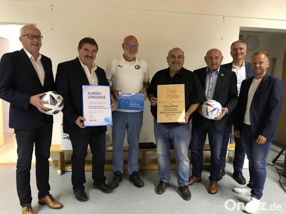 Gebührend feierten die Sportfreunde Ursulapoppenricht (SFU) ihr 50-jähriges Bestehen. 33 Gründungsmitglieder und viele Ehrengäste ließen es sich, begleitet von den Vereinsmusikern Benni Biehler und Dominik Barth, alias „Boazn Briada“, im Kommunikationszentrum am Sportplatz bei einem Büfett und Getränken gut gehen.