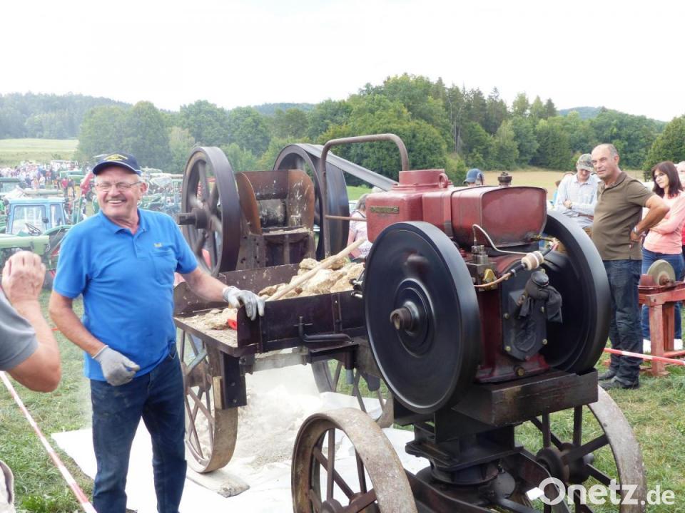Das meiste Publikum aber zog Fred Geitner aus Bernla mit seiner „Stoaquetschn“ aus dem Jahr 1937 an, die von einem Deutz-Motor mit 12 PS und 1,8 Litern Hubraum angetrieben wurde. Als Geitner das Ungetüm in Gang setzte, tat es laut qualmend seine Arbeit und verarbeitete die Ackersteine zu Schotter. Das Gerät war einst in der ehemaligen Gemeinde Engelsberg stationiert. Nach dem Krieg brauchte man das Gerät nicht mehr und es geriet in Vergessenheit. 2008 stieß Fred Geitner zufällig auf die Maschine und restaurierte sie. Er reparierte das Brechergestänge und den Motor und brachte das Gerät auf Vordermann, um es bei Gelegenheiten wie dem Backofenfest als anschauliches Beispiel für alte Landmaschinen laufen zu lassen.