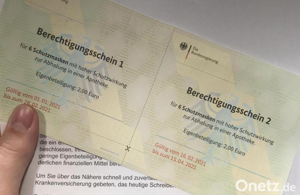 Mehrere Leser haben Briefe bekommen, obwohl sie zwischen 25 und 50 Jahre alt sind, nichts von chronischen Krankheiten wissen und sich fit fühlen. Dennoch bekamen sie je zwei Bezugsscheine: Für vier Euro Eigenbeteiligung gibt es zweimal sechs FFP-2-Masken. "Die Corona-Pandemie schränkt unser aller Alltag ein. Ganz besonders gilt das für diejenigen, für die ein erhöhtes Risiko für einen schweren Verlauf besteht", heißt es im Anschreiben.