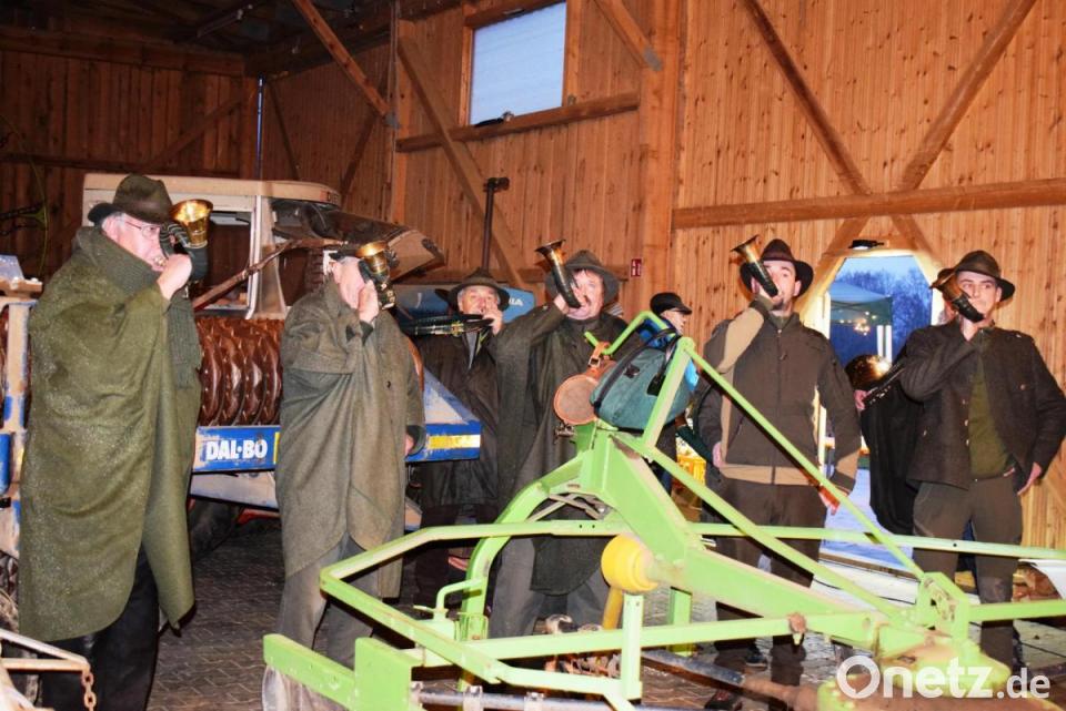 Keine Waldweihnacht ohne die Jagdhornbläser der Kreisgruppe Amberg-Sulzbach mit Hornmeister Hans Saller. Mit dem Stück „Sammeln der Jäger“, gemeint waren die vielen Besucher, sorgten die Bläser, allesamt in grünen Jägermänteln, für den Auftakt. Die Hörner klangen mächtig zwischen den Strohballen und landwirtschaftlichen Gerätschaften.