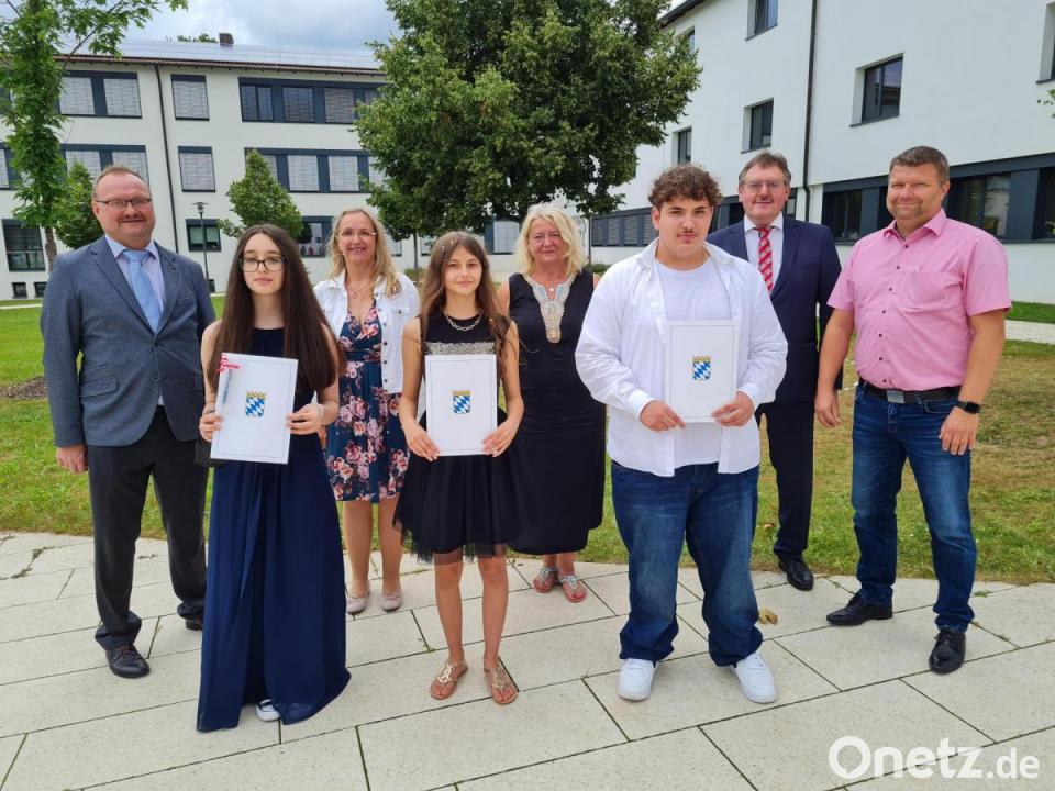 Bürgermeister Hans-Martin Schertl merkte an: „Auch wenn Corona in den vergangenen zwei Jahren einiges verändert hat, so wollen wir doch wenigstens Euren letzten Schultag besonders feiern und die Zeugnisse überreichen. Eure Lehrer haben Euch gut auf die kommenden Aufgaben vorbereitet, wie zum Beispiel ein Fußballtrainer seine Mannschaft auf wichtige Spiele oder Turniere vorbereitet. Ich bin mir sicher, dass ihr alle besser gewesen seid als unsere deutsche Nationalmannschaft bei der EM.