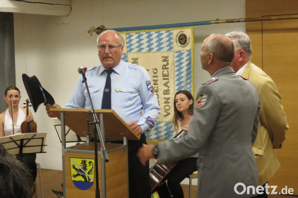Deinzer zeigte die Bedeutung der Fahne auf, die dem Bürgerwehr-Batallion von Maximilian Joseph I., König von Bayern, gestiftet worden war. „Fast auf den Tag genau vor 200 Jahren fand am 31. Mai 1818 die Fahnenweihe auf dem Vilsecker Marktplatz statt. Der 1762 in Vilseck geborene Heinrich Winkelmaier hat dies in seinem Tagebuch umfangreich beschrieben“, führte Deinzer aus. Er erwähnte auch, dass sich der Soldaten- und Kriegerverein 1992 mit der Reservistenkameradschaft zusammengeschlossen habe und dies, verbunden mit der aufwändigen Restaurierung der Fahne, in erster Linie dem damaligen Vorsitzenden Claus Barth zu verdanken sei.