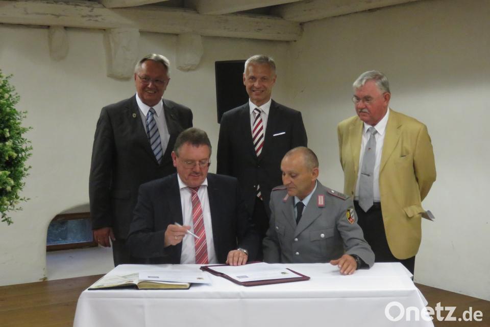 „Heute ist für diese Fahne ein besonderer Tag“, freute sich Bürgermeister Hans-Martin Schertl, „denn sie kehrt zur dauerhaften Aufbewahrung und Präsentation in unser Rathaus zurück. Sie verkörpert Tradition und Kameradschaft und ist ein wertvolles Kulturgut unserer Zeit.“ Mit der Unterzeichnung des Übergabevertrags ging die Jubiläumsfahne in den Besitz der Stadt Vilseck über, die diesen Schatz in Ehren halten wird. Mit bewegten Worten nahm Herbert Zwack Abschied als Fähnrich und hängte seine Mütze an die Fahnenstange.
