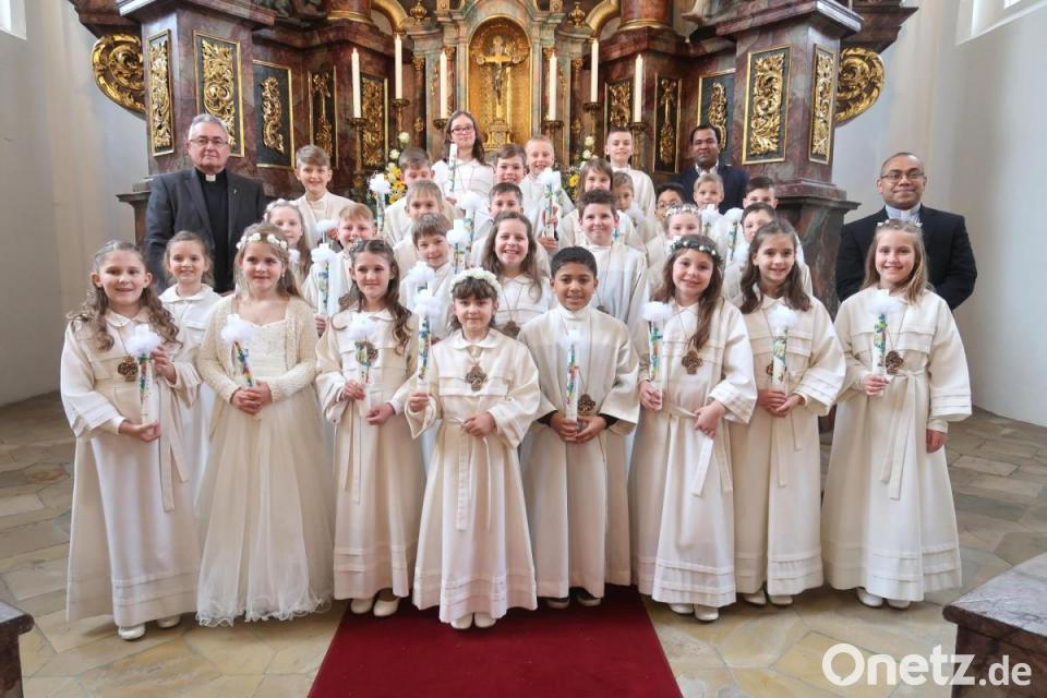 Am Weißen Sonntag traten in der Pfarreiengemeinschaft Vilseck-Schlicht-Sorghof 30 Kinder erstmals an den Tisch des Herrn. Mit den Ortsgeistlichen feierten in der Stadtpfarrkirche St. Ägidius 19 Mädchen und Buben Eucharistie, gleichzeitig taten dies elf Kinder in St. Georg in Schlicht. Im zurückliegenden Halbjahr waren die jungen Christen im Dreiklang von Kirche, Schule und Elternhaus im Religionsunterricht, in Gruppenstunden und Gottesdiensten auf diesen großen Tag vorbereitet worden.