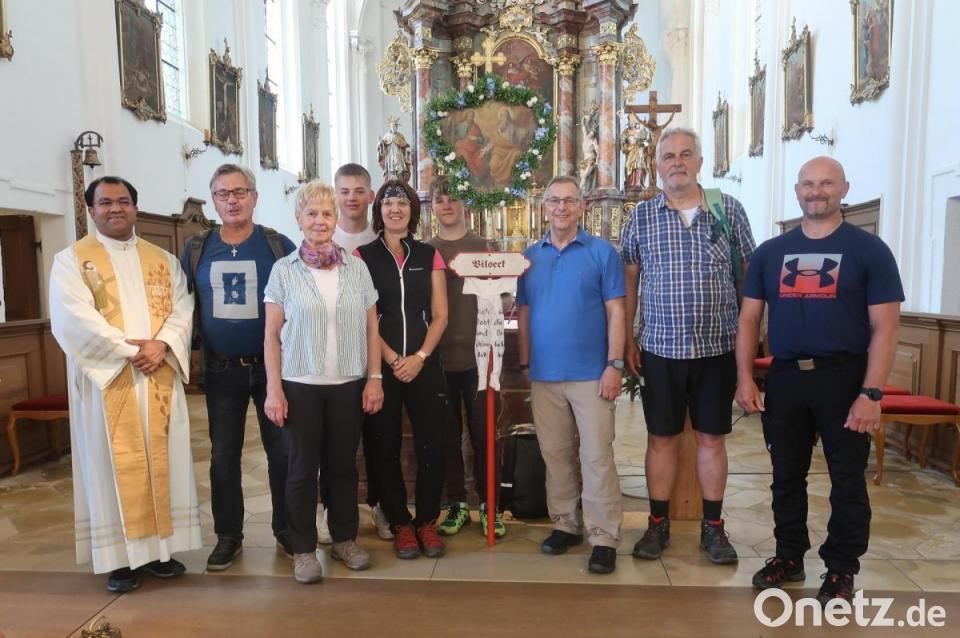 Schon um 7 Uhr früh fanden sich die Wallfahrer wieder ein und feierten den Pfingstgottesdienst, bei dem Vilsecker Ministranten mit dem Priester am Altar standen. Danach ging es trockenen Fußes betend und singend zurück in die Oberpfälzer Heimat, unterbrochen von Rastpausen im Klumpertal und in Horlach. Zusammen mit Bläsern des Musikvereins geleitete Stadtpfarrer Pater Robin die Gruppe zur Pfarrkirche. Er dankte allen, die den Weg zur Heiligsten Dreifaltigkeit auf sich genommen hatten und erteilte den eucharistischen Segen. Nach dem „Großer Gott, wir loben dich“ schlossen die Angehörigen auf dem Kirchplatz ihre Wallfahrer wieder glücklich in die Arme.