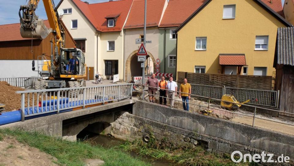 Derzeit werden die Rohre durch das Hafnertor in Richtung Schlichter Straße geführt. Eine große Herausforderung war die Unterquerung des Ebersbachs. Hier war es notwendig, dessen Wasser teilweise aufzustauen und abzupumpen, damit ein trockenes Baufeld vorhanden war.