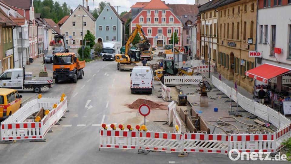 Die gesamte Baumaßnahme am Marktplatz Vilseck schreitet zügig voran. Momentan werden die Hausanschlüsse auf der Rathausseite erneuert. Anschließend werden im gegenüberliegenden Bereich die neuen Wasserleitungen und Hausanschlüsse verlegt. Die Bauarbeiten am Marktplatz werden voraussichtlich Ende Juni fertiggestellt sein, dann werden die neuen Wasserleitungen und Hausanschlüsse in der Herrengasse in Angriff genommen. Die Durchfahrt über den Marktplatz ist weiterhin gesperrt. Als Umleitungsstrecke dient die Grabenstraße.