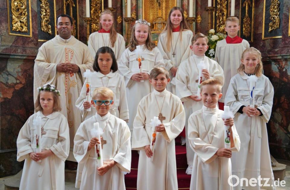 An die Eltern appellierten die Geistlichen, ihren Kindern ein gutes Vorbild zu sein und sie in der Liebe zu den Menschen und der ganzen Schöpfung zu erziehen. Um Segen und Schutz baten die Kinder in den Fürbitten und erneuerten das Taufversprechen. Gemeinsam im Kreis um den Altar versammelt sprachen sie das Vaterunser-Gebet und empfingen zum ersten Mal den Leib Christi.