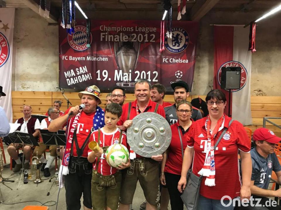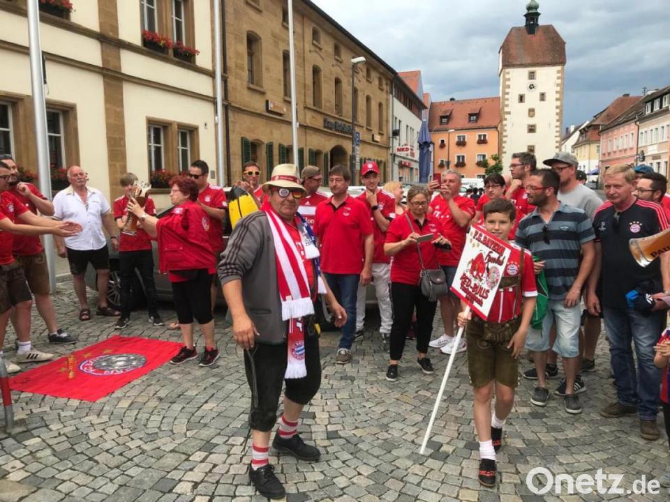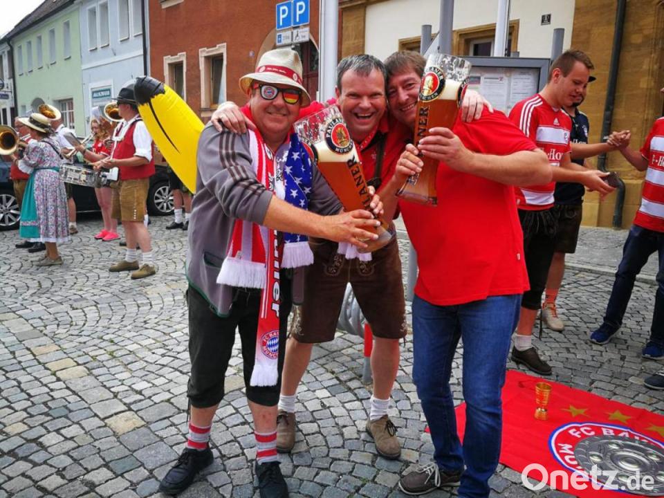 Den Auftakt machte am Nachmittag ein Warm-up, bei dem das als Kuchen nachgebildete Double, das Konditormeisterin Samantha Pirkl kreiert hatte, angeschnitten wurde. Dann ging es gegen 17 Uhr zur Blasmusik der Ehenbachtaler Trachtenkapelle zum Vilsecker Rathaus, um dem FC Bayern München zu huldigen. Am Vorplatz wurden symbolisch die Meisterschale und der DFB-Pokal mit zwei randvoll gefüllten Weißbiergläsern auf einer rot-weißen FC-Bayern-Flagge abgestellt.