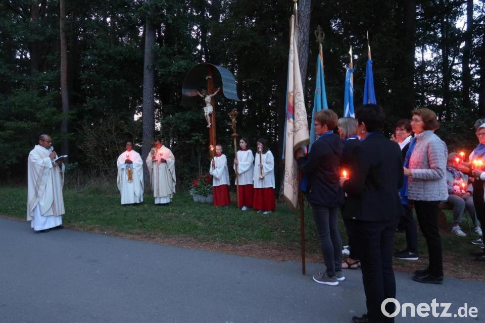 Madanu sprach über die Gottesmutter Maria und ihre menschlichen Sorgen. Obwohl sie die Handlungen ihres Sohnes nicht immer verstanden habe, ließ sie ihn im Vertrauen auf Gott seinen Weg gehen. „Gott ist der zentrale Punkt und die Mitte ihres Lebens gewesen“, fügte der Geistliche hinzu. „Suchen auch wir seine Nähe in Freud und Leid.“ Die anschließende Lichterprozession führte zum Drechselberger Kreuz, wo Pater Jimmy Joseph eine kurze Andacht hielt.