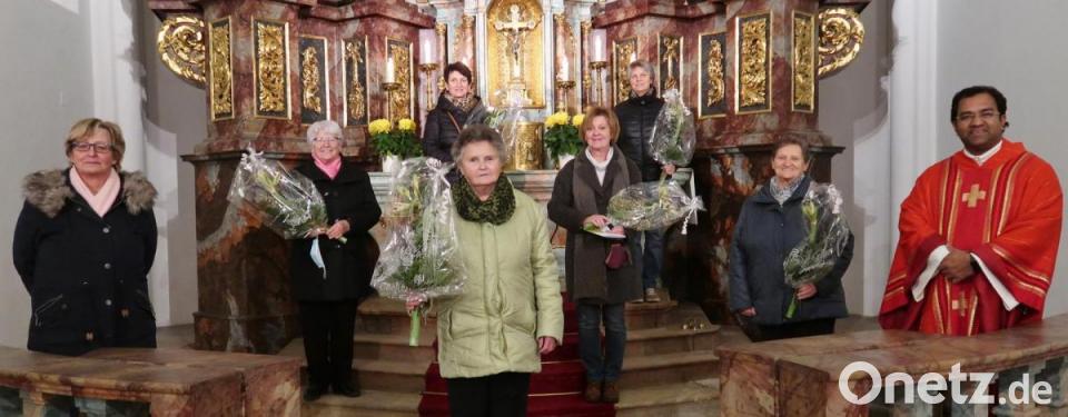 Pater Robin Xavier begrüßte die Frauen zur Eucharistiefeier und dankte ihnen für ihre engagierte Mitarbeit in der Pfarrei. Im Anschluss bat die Sprecherin des Zweigvereins Vilseck, Monika Mrosek, die Jubilarinnen zu sich. Mit anerkennenden Worten dankte sie den Frauen für ihre langjährige Treue. Jede erhielt einen Blumengruß samt Urkunde und Nadel. Auch die fleißigen Zeitschriften-Austrägerinnen wurden mit einer kleinen Aufmerksamkeit bedacht. Da bereits die Muttertagsfeier ausgefallen war, gab es für alle anwesenden Frauen noch ein nachträgliches Geschenk. „Hoffen wir, dass die Zeiten bald wieder besser werden, damit unsere Gemeinschaft im neuen Jahr wieder aktiver und geselliger werden kann“, sprach Mrosek allen aus dem Herzen.