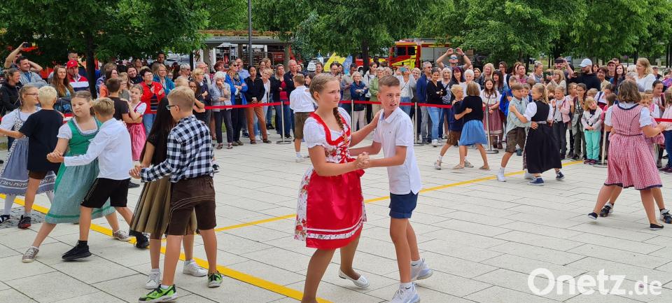 Die Feier an der Grund- und Mittelschule Vilseck stand unter dem Motto „Fest der Traditionen“. Nach der Begrüßung durch Rektorin Petra Ligensa und Bürgermeister Hans-Martin Schertl eröffnete die Klasse 6b den Reigen der Darbietungen mit dem Musikstück „Applaus, Applaus“ von den Sportfreunden Stiller. Als weitere Aktivitäten folgten der Tanz „Head, Shoulders, Knees and Toes“ (3b), der Eissong (4b und 5), Gstanzln mit Begleitung von Boomwhackers-Röhren (4a), Masskrugstemmen (6b), Kinderschminken (6a), Luftdruckraketenschießen (6a/b), Insektenverkauf (6a/b), Saftbar (8), Fußball/Golf (8), Verkauf von Lebkuchenherzen und gebrannten Mandeln sowie Basteln von Schlüsselanhängern im Werkraum. Schüler der Klassen 6, 7 und 8 zeigten Tänze um den Kirwabaum, die Tanzlehrer Dieter Kohl und Konrektorin Claudia Neidl einstudiert hatten.