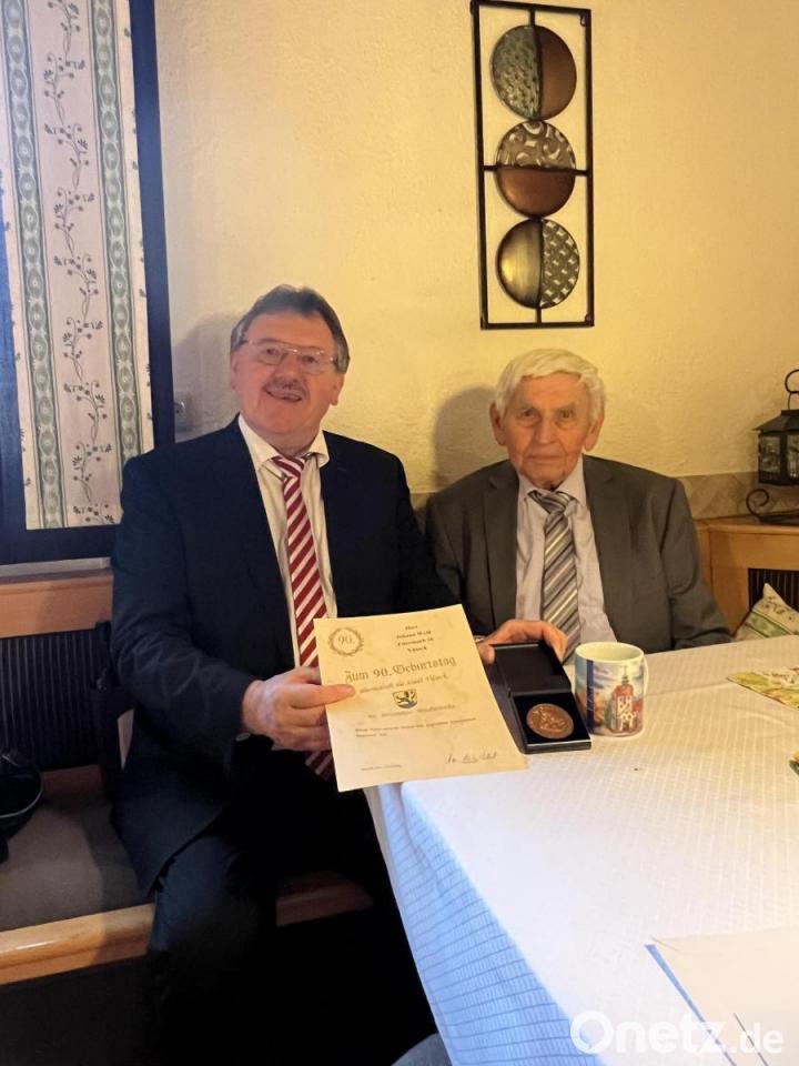 Schertl überbrachte die Glückwünsche der Stadt Vilseck und von Landrat Richard Reisinger. Außerdem überreichte er ein Präsent der Stadt und des Landkreises sowie die Landkreismedaille in Bronze. Neben vielen Verwandten, Freunden und Nachbarn gratulierte auch Pater Robin von der Pfarreiengemeinschaft.