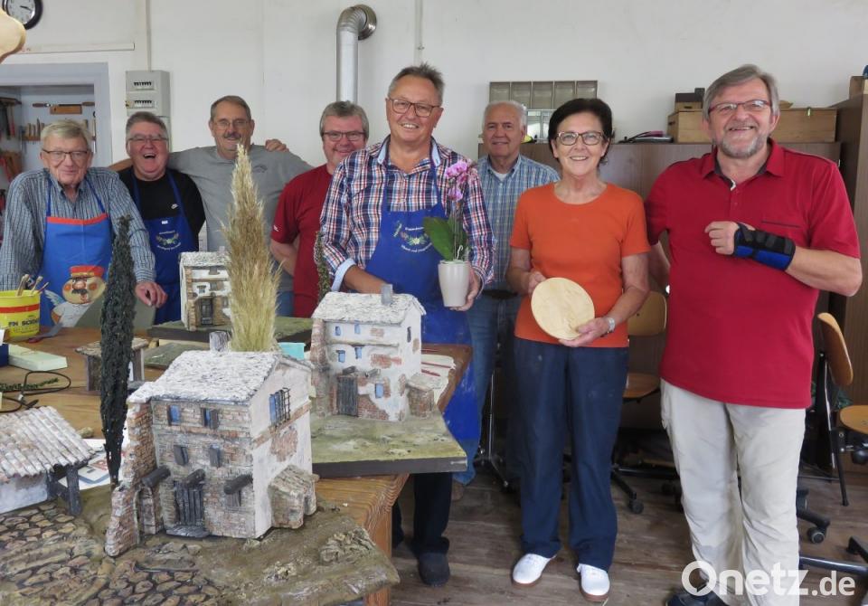 Mit Styrodur, Gips und Trockenfarbe beschäftigte sich die Gruppe drei Tage lang in den Räumen des alten Schulhauses. Zum Abschluss überreichte Vorsitzender Wolfgang Albersdörfer an die Kursleiterin den Vereins-Teller und eine Orchidee. Vitzthum bescheinigte den eifrigen Herren großes Geschick und sagte, dass sie gerne wieder zu einem Kurs nach Vilseck kommen würde.