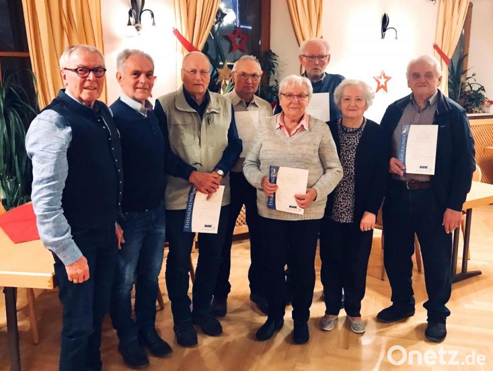 Der VdK-Ortsverband Vilseck zeichnet langjährige Mitglieder für ihre Treue aus. Von links: Vorsitzender Ernst Andraschko, Stadtrat Peter Wismeth, Herbert Zwack (25 Jahre), Alfons Meier, Maria Scherf , Oswald Krebs (alle 20 Jahre) Kreisvorsitzende Marianne Kies-Baldasty und Karl-Heinz Meier (20 Jahre).