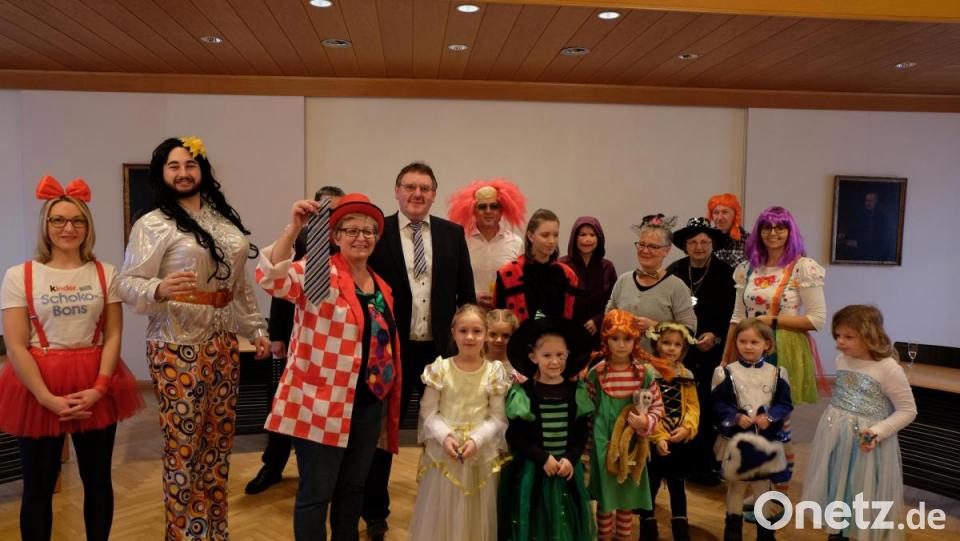 Hübsch verkleidet kamen die Mädchen vom Vilsecker Kindergarten mit ihrer Betreuerin Monika Mrosek, um Bürgermeister Hans-Martin Schertl die Krawatte abzuschneiden. Mit dem Vilsecker Faschingsruf "Vilsania uiuiuiui, eieieiei" enterten sie den Saal, wo auch die Mitarbeiter des Rathauses die Kinder empfingen. Schließlich ging es heuer der Krawatte des Bürgermeisters zum 15. Mal an den Kragen. Trotz ihres „Attentats“ erhielten die kleinen Prinzessinnen, Gardemädchen und Hexen noch Süßigkeiten, bevor sie sich wieder auf den Weg in den Kindergarten machten.