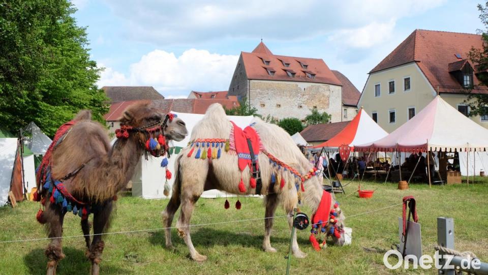 Ein prächtiges Bild geben die Kamele vor der Kulisse der Burg Dagestein ab. Die Kinder durften sogar eine Runde auf den exotischen Tieren reiten.