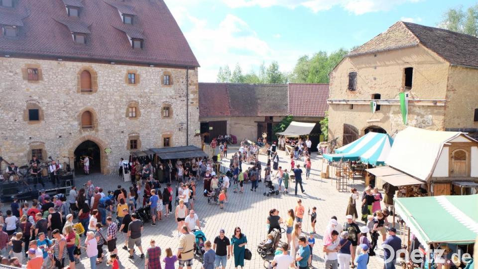 Reges Treiben herrschte rund um die Uhr im Hof der Burg Dagestein. Links im Bild die Spielleut-Eichelheer, die das Ritterlager musikalisch umrahmten.