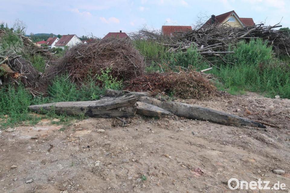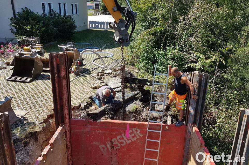 Die Bahnhofstraße gleicht derzeit einer Großbaustelle, die vorwiegend von Baggern und Lkw befahren wird. Für die Erneuerung der Wasserleitung werden neue Rohre verlegt, die auch unter der Vils hindurchgeführt werden müssen. Nun förderte der Bagger bei Grabungsarbeiten an der Vilsböschung in der Nähe des Feuerwehrhauses drei alte Holzpfähle zutage, die wahrscheinlich schon lange dort schlummern. Einige Jahrhunderte könnten die dicken Eichenpfähle, die nach unten spitz zulaufen, bereits auf dem Buckel haben. Sie dürften vom Unterbau einer alten Holzbrücke stammen, die einst am Auslauf des ehemaligen Stadtweihers errichtet wurde. Bevor die gut erhaltenen Relikte aus der Vergangenheit durch die Baufirma entsorgt wurden, brachte die Stadt Vilseck die alten Holzpfähle in Sicherheit.